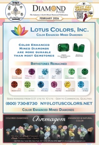 The Industry’s Earth Mined Diamond Publication See Page 19 FEBRUARY 2026 See Page 20 Color Enhanced Mined Diamonds are more durable than most Gemstones (800) 730-8730 NY@LOTUSCOLORS.NET B IRTHSTONES R EIMAGINED C OLOR E NHANCED M INED D IAMONDS C OLOR E NHANCED M INED D IAMONDS Emerald Gemstone Green Color Enhanced Diamond •